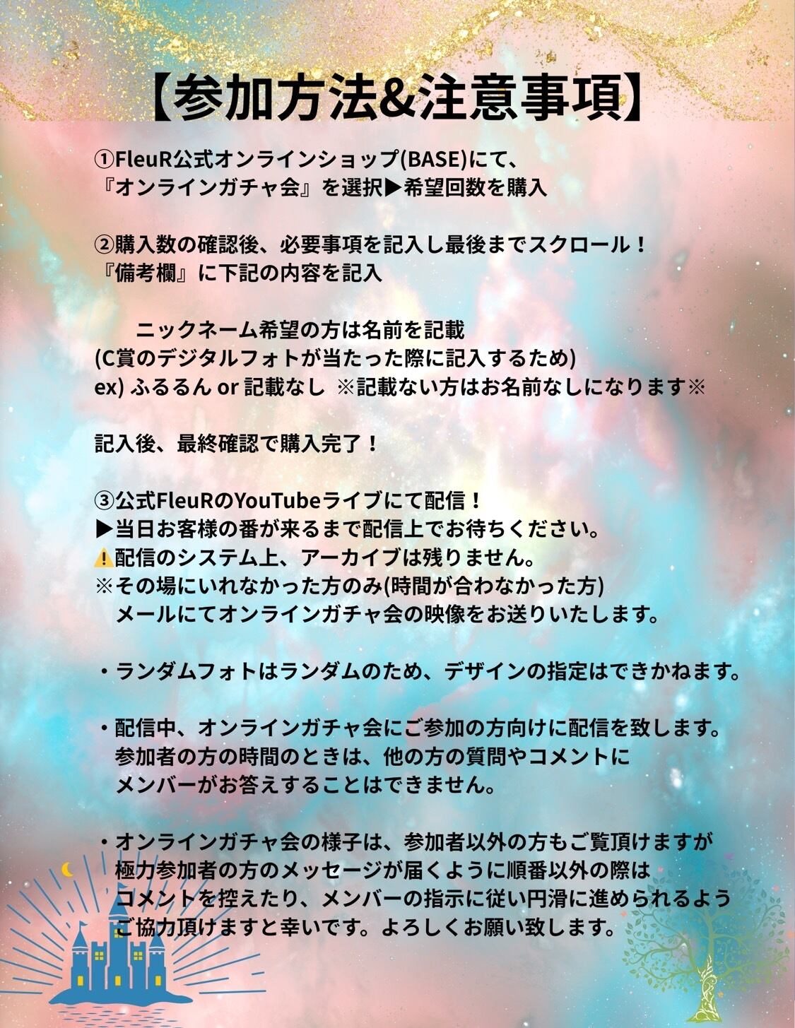 ①FleuR公式オンラインショップ(BASE)にて、『オンラインガチャ会』を選択▶︎希望回数を購入